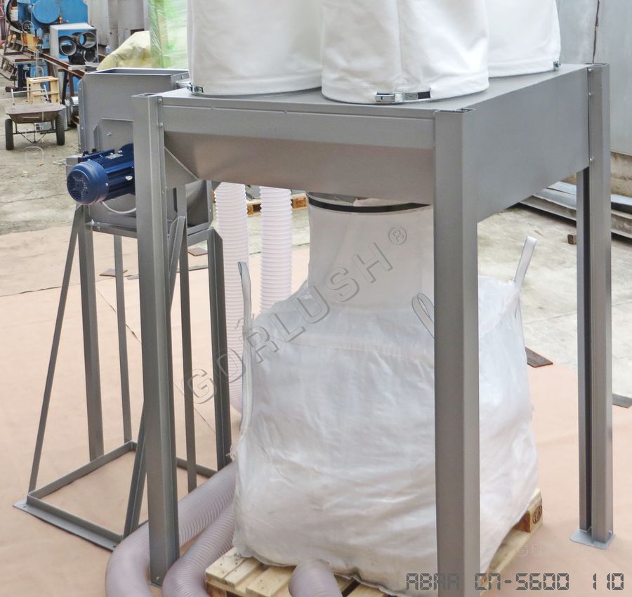 Аспирационная установка СП-5600 (фильтр в виде мешков, изготовленных из полиэфирного нетканого полотна) предназначена для отделения стружки и пыли различного вида и размера при подключении к деревообрабатывающему оборудованию большой мощности и производительности, такому как четырехсторонние фрезерные, многопильные станки или группы стандартных станков (фуговальные, рейсмусные, фрезерные). Предназначена для локального подключения оборудования, находящегося на отдельном участке или в отдельном помещении.