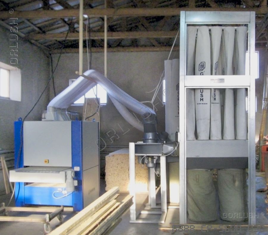 Аспирационные установки СП - 5600, 7000, 9000 (фильтр в виде мешков, изготовленных из полиэфирного нетканого полотна плотностью 180...320 г/м², с производительностью, соответствующей цифровому индексу наименования). Предназначены для отделения стружки и пыли различного вида и размера при подключении к деревообрабатывающему оборудованию большой мощности и производительности, такому как четырехсторонние фрезерные, многопильные станки или группы стандартных станков (фуговальные, рейсмусные, фрезерные). Предназначены для подключения оборудования на локальном участке или в отдельном помещении;