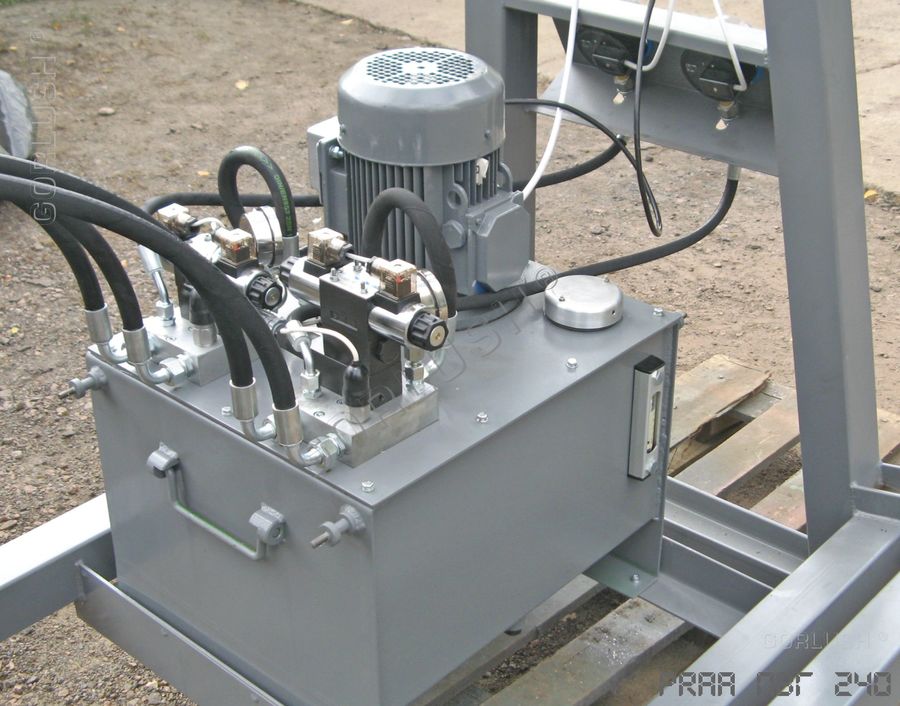 - гидрозамков на каждом силовом гидроцилиндре, которые позволяют, при необходимости, вести прессование на длине от 800 до 3200 мм на любой из автономно работающих секций или длиной от 3200 до 6400 мм по всей длине пресса. Количество независимых участков прессования может достигать 12 шт;