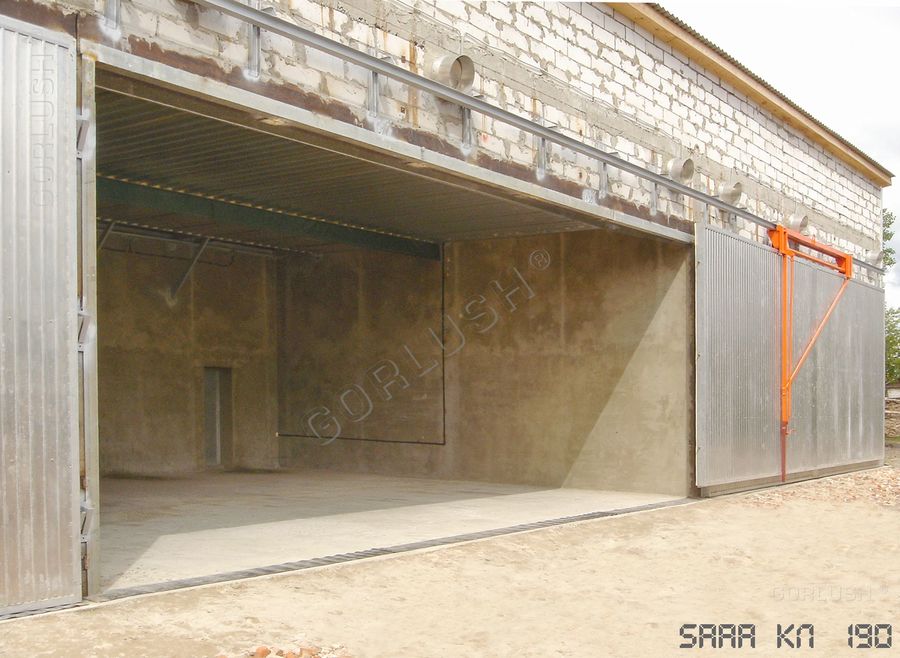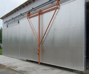 - организация ворот в виде сдвижной панели и ее явные преимущества (низкая стоимость, надежность, обеспечение герметичности, отсутствие поворотных элементов).