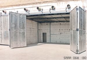 Проем ворот соответствует внутренним габаритам камеры, что очень функционально и удобно при загрузке камеры. Дверная панель сдвижная, иногда может быть складывающейся в вертикальной, а на сегодняшний день есть решения и в горизонтальной плоскости.