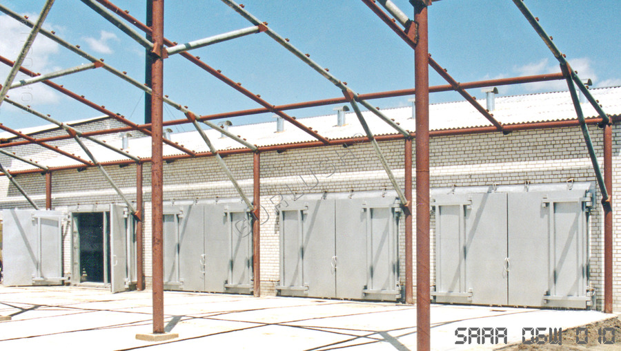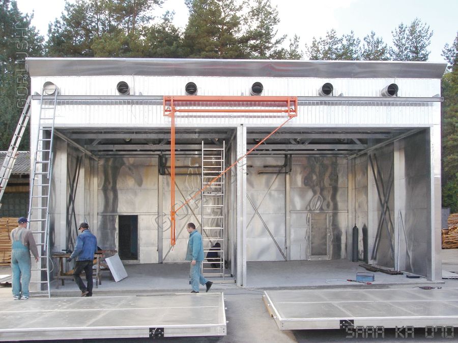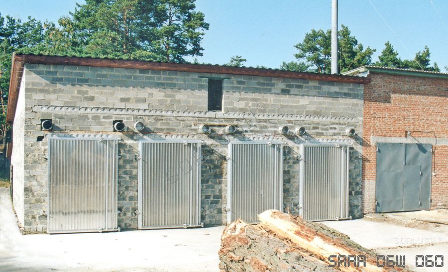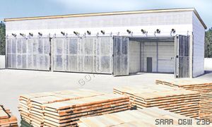 Приведем ниже для примера некоторые из реализованных нами проектов сушильных камер и комплексов с фронтальной загрузкой пиломатериалов, построенных капитальным способом с применением строительных материалов.