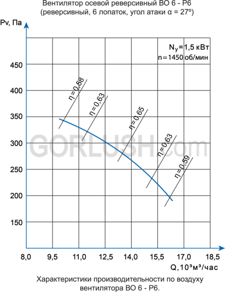 | Обозначение вентилятора | Производительность, м³/час | Полное давление, Па | Мощность двигателя, кВт | Частота вращения, об/мин | Масса, кг |