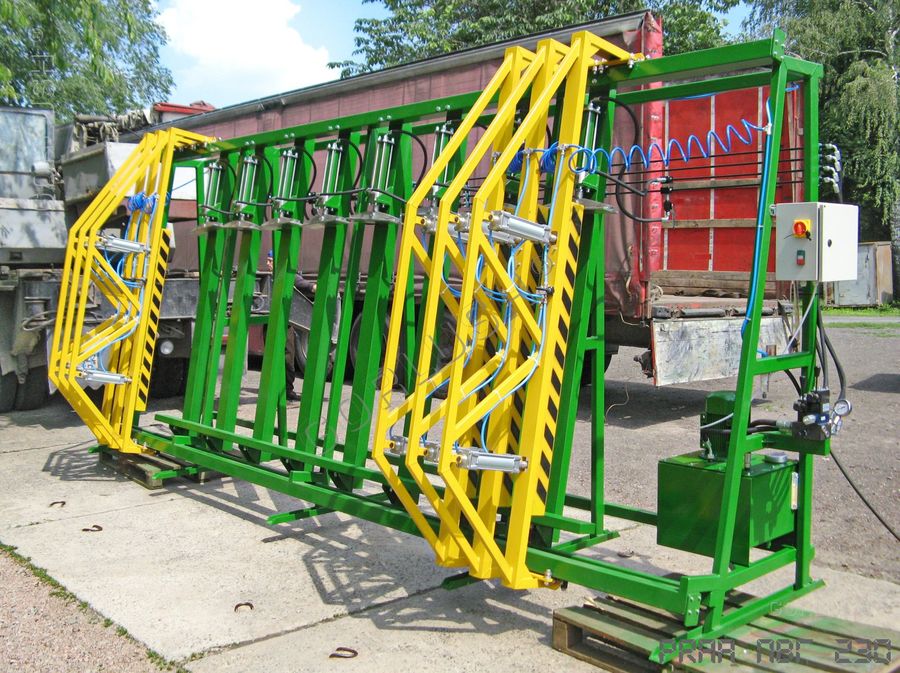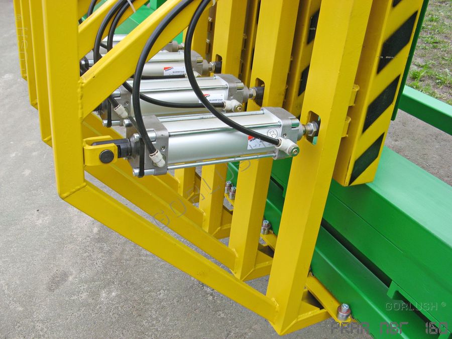 - подвижных кареток силовых гидроцилиндров, позволяющих быстро перенастраивать пресс при изменении высоты пакета от 600 до 1200 мм;