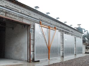 - организация ворот в виде сдвижной панели и ее явные преимущества (низкая стоимость, надежность, обеспечение герметичности, отсутствие поворотных элементов).