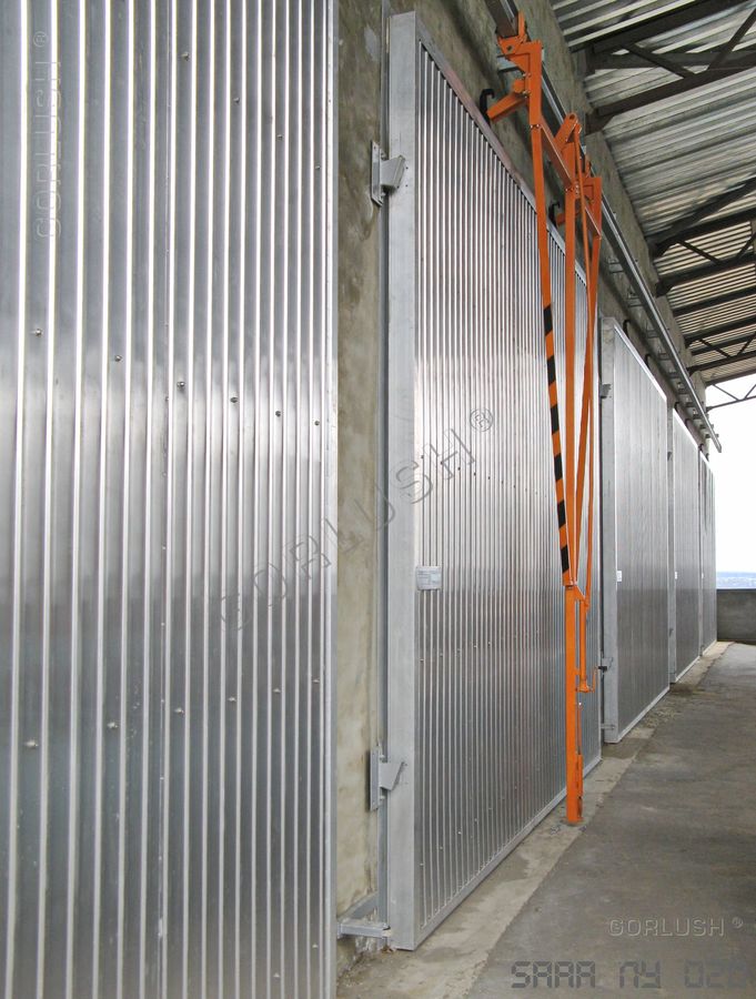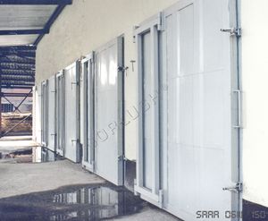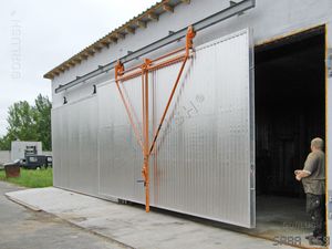 Проем ворот соответствует внутренним габаритам камеры, что очень функционально и удобно при загрузке камеры. Дверная панель сдвижная, иногда может быть складывающейся в вертикальной, а на сегодняшний день есть решения и в горизонтальной плоскости.