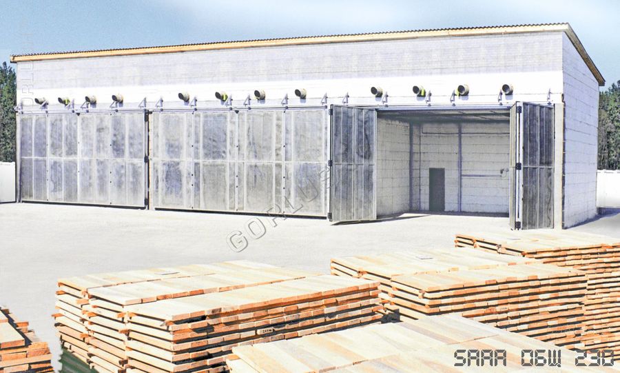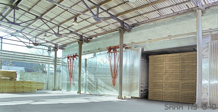 Приведем ниже для примера некоторые из реализованных нами проектов сушильных камер и комплексов с фронтальной загрузкой пиломатериалов, построенных капитальным способом с применением строительных материалов.